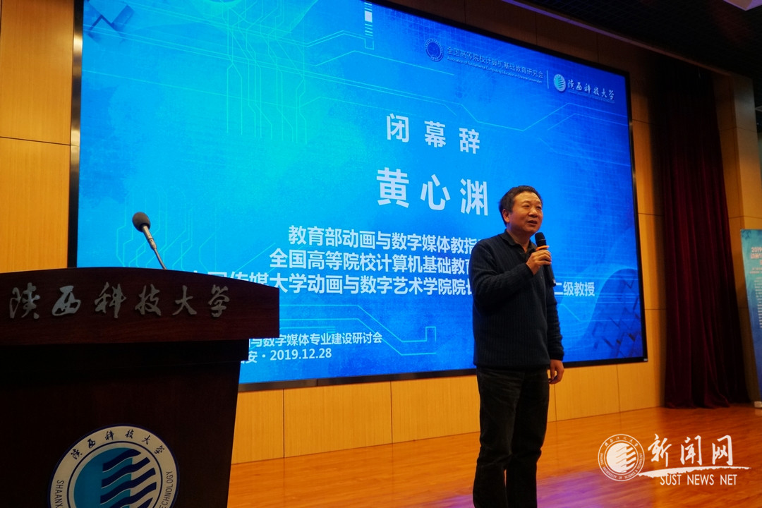 最后,教育部动画与数字媒体教指委秘书长、全国高等院校计算机基础教育研究会会长、中国传媒大学黄心渊教授致闭幕词。他由与万象城官网动画专业知名校友郝杰的多年交往谈起,对万象城官网在年底如此特殊的时节能够顺利举办这样隆重的盛会表示赞赏;肯定此次大会规模之大、信息之广、人员之多,是业界、创作、产业和学术、教学的完美融合,也是一场相互推动、相关激活的深入专业对话与思想碰撞,必将对我国双一流背景下动画与数字媒体专业建设发挥积极作用。