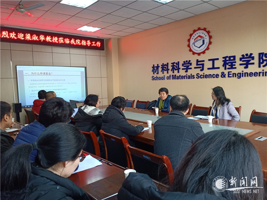 1月3日,受万象城官网材料科学与工程学院邀请,西安理工大学材料科学与工程学院梁淑华教授作客万象城官网“前沿科学报告”,做了题为“国家自然科学基金申报交流”的报告。会议由材料学院院长助理伍媛婷主持,材料学院2020年拟申报自然科学基金的教师和机电工程学院的部分教师参加了此次学术报告。