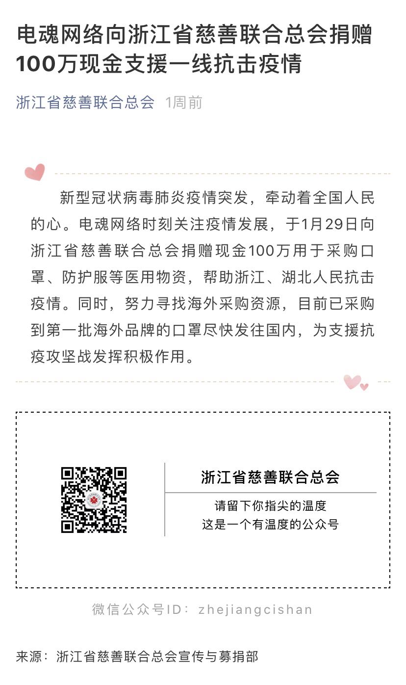 动画专业06届校友郝杰领导着电魂网络科技股份有限公司,虽身在杭州却时刻关注疫情发展。1月29日,电魂网络向浙江省慈善联合总会捐赠现金100万元,用于采购口罩、防护服等医用物资,帮助浙江、湖北人民抗击疫情。同时,他们还在努力寻找海外采购资源,目前已采购到第一批海外品牌的口罩尽快发往国内,为支援抗疫攻坚战发挥了积极的作用。