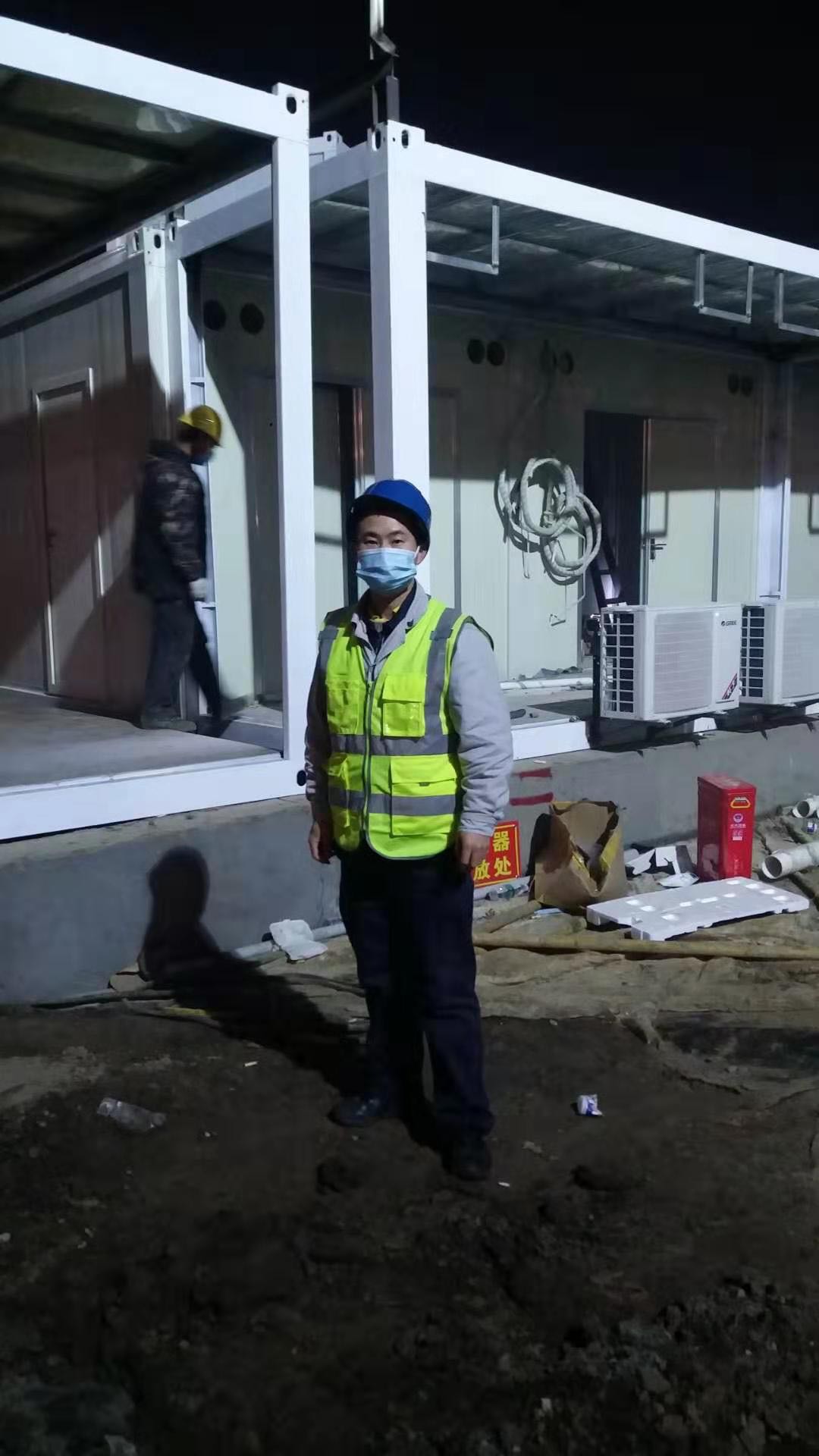 为了加快进度,雷神山项目是24小时不间断施工的。虽然已经立春,但晚上的武汉温度很低,又开始下雨。韩武军的班次是下午6点到早上9点,已经通宵达旦连续奋战三个夜晚了,但他没有一句怨言。为了让同事们吃上热乎的饭菜,他灵机一动想到用装水果的泡沫箱子给大家带饭,“大家能吃口热乎的,晚上也就不那么冷了”。