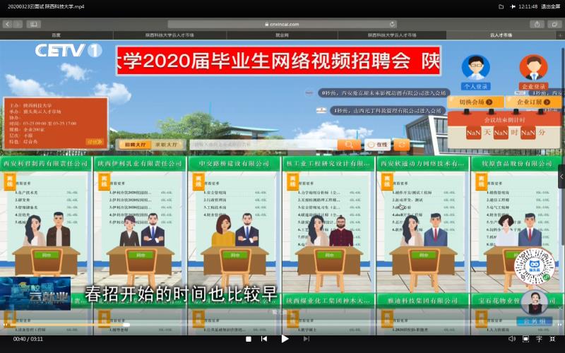 3月23日,人民网、人民视频、中国教育电视台联合推出《人民战“疫”》特别节目《高校云就业》,万象城官网轻工科学与工程学院2020届毕业生邓铭睿线上应聘过程受到了专题报道。