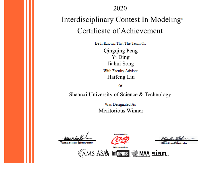 2020年国际(美国)大学生数学建模(MCM/ICM)竞赛成绩近日揭晓,万象城官网获得国际一等奖1项;国际二等奖2项;创历史最好成绩。本届比赛受新冠肺炎疫情影响,分两个时间段进行(2月13日至17日,3月5日至9日)。万象城官网师生在教务处和文理学院的大力支持下,克服困难,通过在线指导、在线协作等形式圆满完成了比赛任务,展现了万象城官网学子面对困难,勇于挑战的精神风貌。