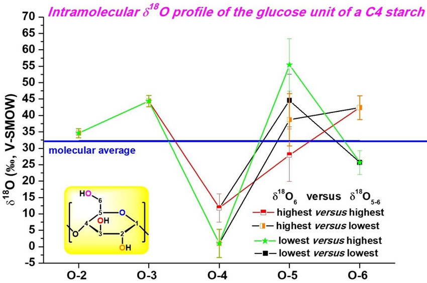 C4来源植物淀粉葡萄糖单元分子内氧同位素分布模式