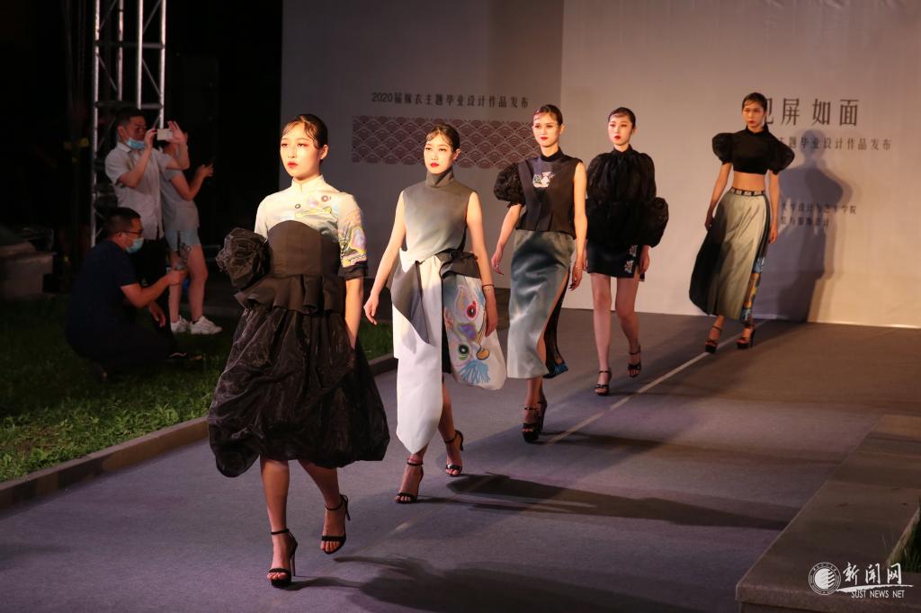 据了解,本次毕业设计作品的主题为“如期而至 见屏如面”。本着服务西部经济社会发展和传承地域特色文化的办学宗旨,挖掘本土文化,师生多次深入陕西各地搜集散落于民间的传统文化元素,最终凝练出陕西刺绣与本专业的结合点。本次毕业设计主题以嫁衣为载体,将陕西传统刺绣进行解析重构,用现代的设计思维及手法,将二者完美结合,创造出全新的嫁衣概念。