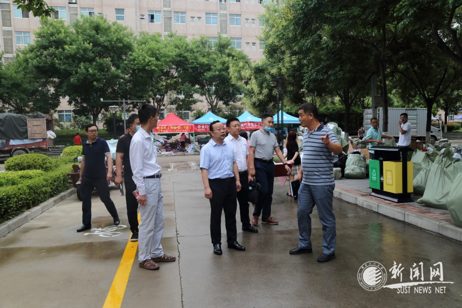 王道安先后走访了学生行李邮寄点、物品回收点、学生公寓、快递服务中心等地,听取了学工部关于公寓整体概况、疫情防控期间学生健康上报、学生返校系统以及毕业生离校情况等方面的工作汇报。