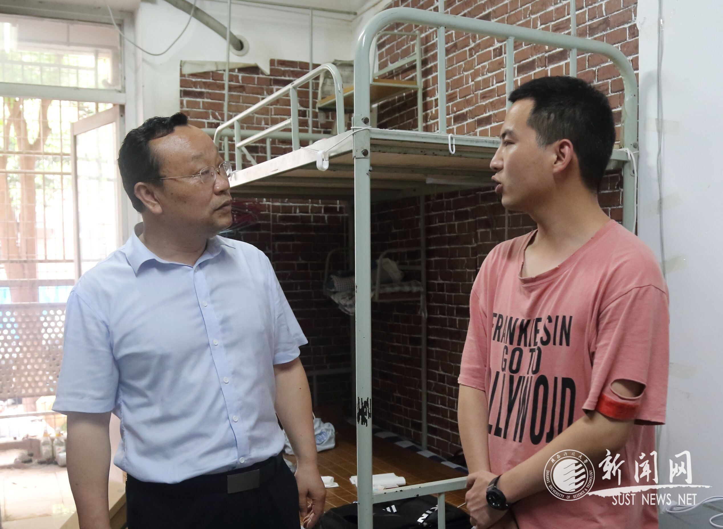 为确保毕业生离校工作有序开展,7月21日下午,校党委副书记王道安深入学生公寓检查毕业生离校工作,对严格落实学校关于疫情防控的安排部署、优化学生毕业离校工作提出了要求。学工部相关负责人陪同检查。