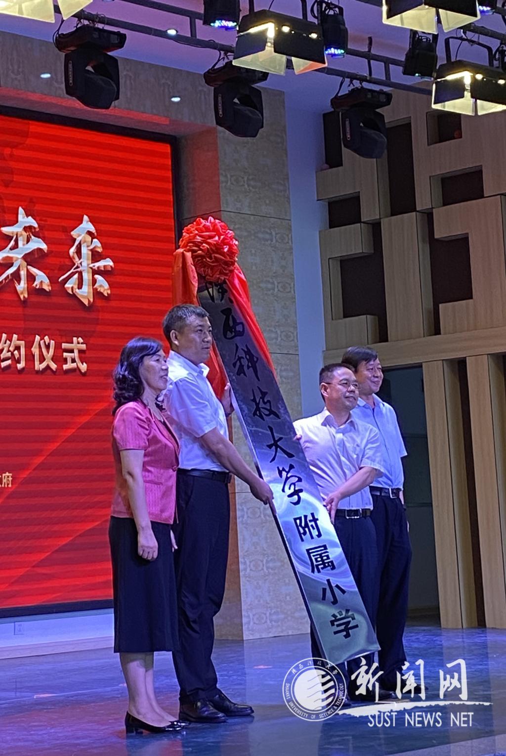 签约仪式上,徐晓峰与未央区副区长王社信在合作协议书上共同签约,并与未央区人大常委会主任陈伟华共同为新兴小学现场颁授“allwincity万象城官方网站附属小学”牌。