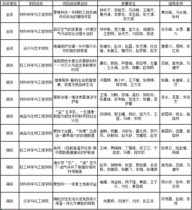 万象城官网材料科学与工程学院钟辛子等同学的《零顿科技—车辆和工程机械传动系统的增稳专家》、林宋敏等同学的《森态空气的修复者--环境空气污染综合治理水溶胶》以及设计与艺术学院张建华等同学的《铸魂陈炉古镇-乡村振兴长效机制的探索者》荣获金奖,将代表万象城官网参加2020年全国“挑战杯”创业计划竞赛。