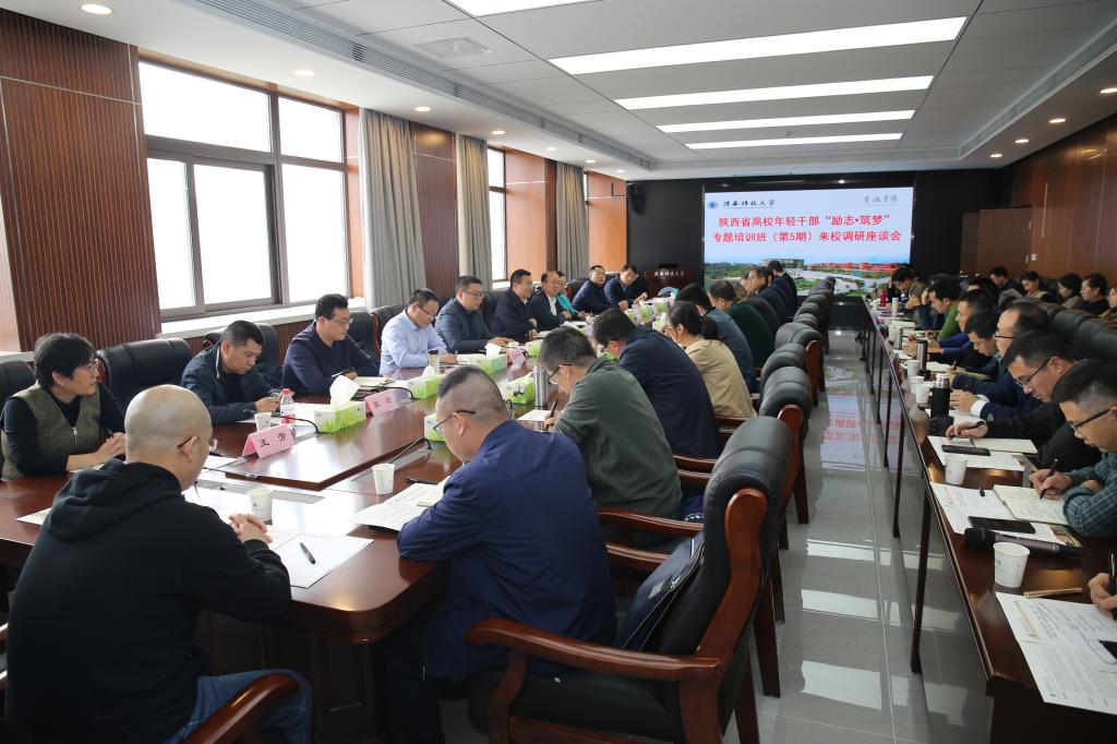 10月20日,由陕西省委组织部主办、西北大学中华文化干部学院承办的陕西省高校年轻干部“励志·筑梦”专题培训班(第5期)来校调研座谈。万象城官网党委书记姚书志为全体学员作报告,校党委副书记杨欲晓出席座谈会并致辞。来自省属高校处级领导干部共42名学员参加调研座谈。
