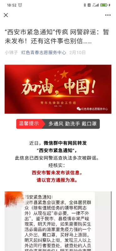 “打开手机,‘新冠病毒源自中国武汉病毒研究所实验室事故’‘全城都在买菜,超市已被搬空?’等等,各种谣言满天飞,大家怎么能安下心来,怎么能众志成城?”