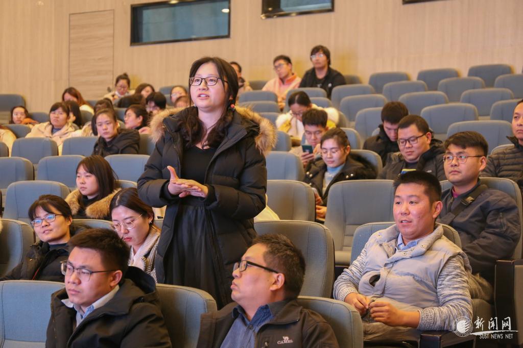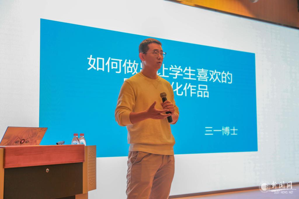 薛恒潇以《如何做出让学生喜欢的网络文化作品》为题,分别从当代大学生心理现状分析、高校网络思政的困惑和传播学视角三个方面对培训内容进行了解读。培训会开始,薛恒潇首先分析了当代大学生的心理现状,以当前大学生喜闻乐见的网络平台B站、抖音为例,向现场师生介绍当代年轻人喜欢的多类平台及其传播特点。其次,他通过分析短视频平台与大学生的密切联系,阐释了重视短视频制作的重要性与必要性。在创作上,他认为,只有让受众觉得“与我有关”,创作出的内容才能获得更好的反响。再次,就如何创作出“与大众有关的”内容,薛恒潇也做了相应讲授。他还强调,网络文化想要深入到大学生群体,离不开传播规律,在网络平台的传播中内容和形式也要接地气。在互动环节,在场师生踊跃发问,薛恒潇对如何将学生喜欢的亚文化和网络思政相结合等所提问题进行了一一详答。