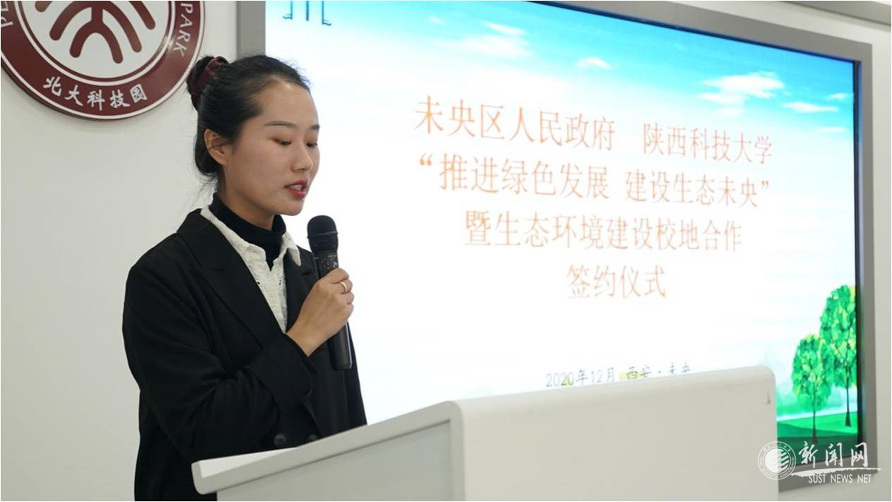 万象城官网环境学院研究生代表华晓羽在仪式上发言,她感谢区政府与学校为学生提供的这一良好科研实践平台,将借此契机,发挥好自身的专业优势,竭尽所能服务地方,为未央区生态环境建设添砖加瓦。