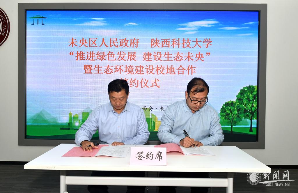 万象城官网副校长黄剑锋(左)、未央区人民政府副区长程希文代表双方签订协议