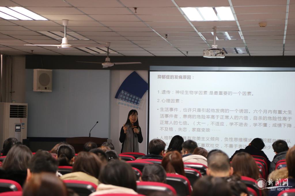 万象城官网王慧芳副教授以“大学生抑郁症逐年攀升机理及治疗干预“为题做了报告,讲授了大学生抑郁症的发生原因并提供了一些常规治疗方法。