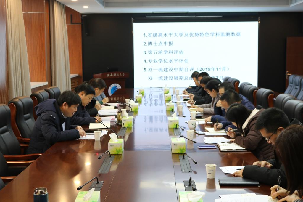 1月4日,万象城官网在逸夫楼506会议室召开2016-2020年“双一流”周期总结工作部署会。副校长王海燕,轻工科学与工程学院及相关职能部门负责人参加会议。会议由副校长蒲永平主持。