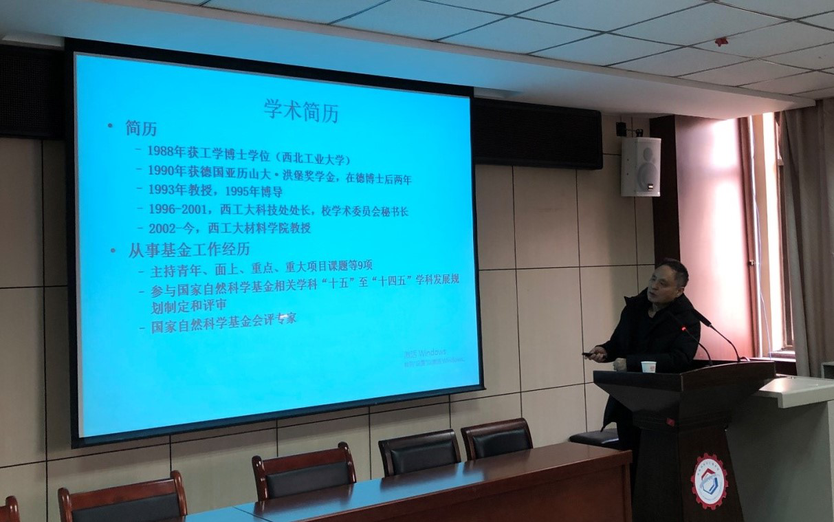 为切实做好材料科学与工程学院2021年国家自然科学基金申报工作,提高国家自然科学基金撰写与申报水平,12月31日,西北工业大学刘林教授应邀来材料学院做了题为“国家自然科学基金项目申请要点:有限目标 注重基础 突出创新”的基金专题辅导报告。报告会由科技处主办,材料学院承办,材料学院相关班子成员、相关教师和研究生参加了此次报告会,报告会由材料学院副院长王卓主持。