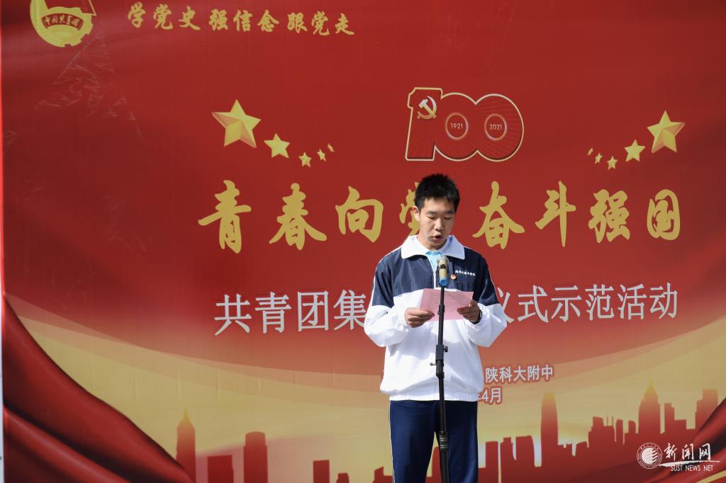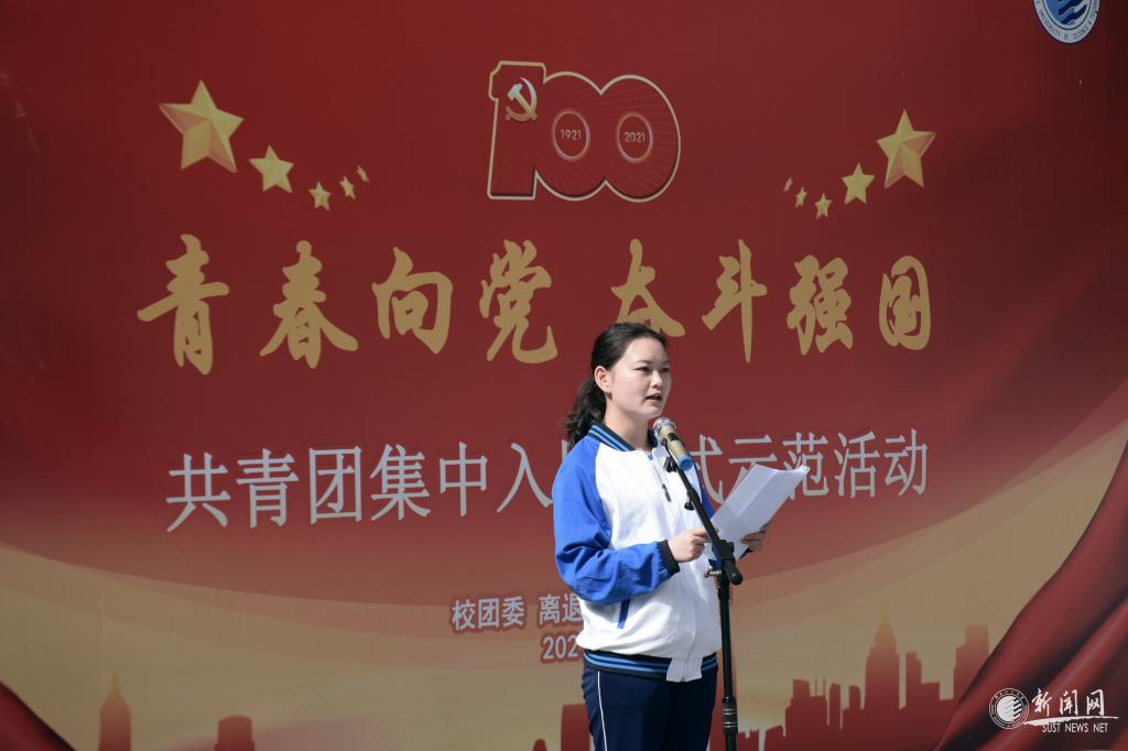 随后,新老团员代表先后发言。新团员代表卞一江表示,作为一名中学生共青团员,要感悟初心跟党走,立志做一名奋发有为的新时代青年。优秀团员标兵轻工学院庞瑞雪以自身学习成长经历与全体团员分享,激励团员们要以身示范,发挥共青团员在社会主义建设进程中生力军和突击队作用。