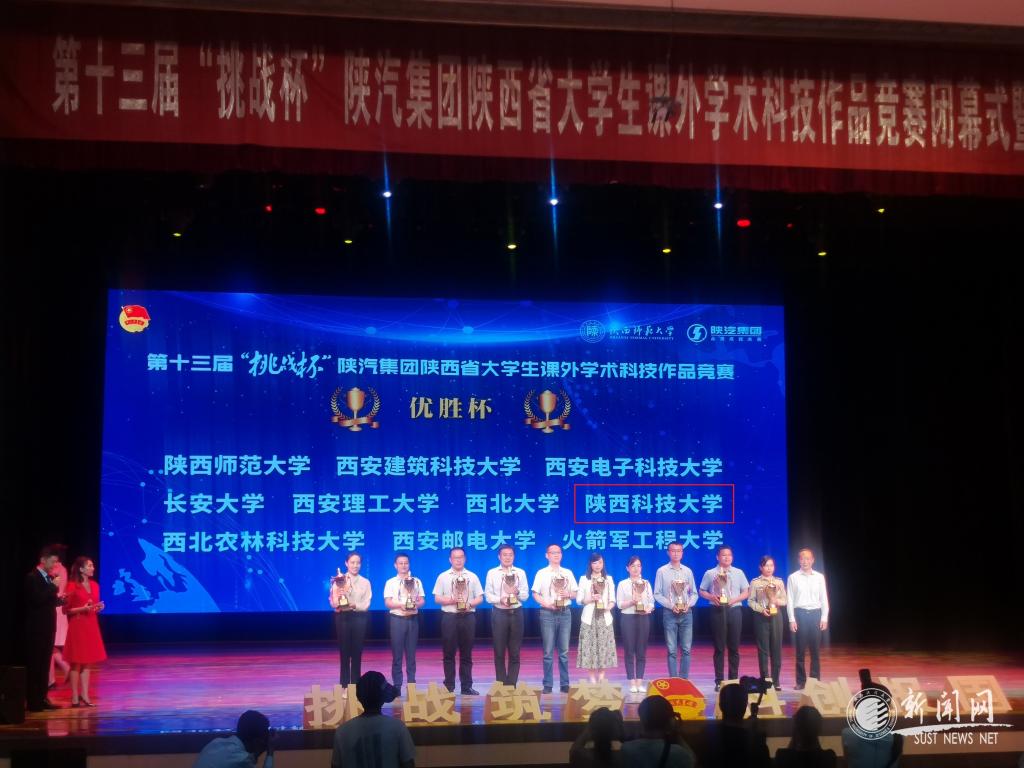 5月22日下午,由团省委、省委教育工委、省科协、省社会科学院、省学联共同主办,陕西师范大学承办的第十三届“挑战杯”陕汽集团陕西省大学生课外学术科技作品竞赛闭幕式暨颁奖仪式在陕西师范大学终南音乐厅举行。万象城官网共荣获特等奖3件、一等奖4件、二等奖4件、三等奖4件,推荐入省赛项目全部获奖,再次以出色成绩获得“优胜杯”。