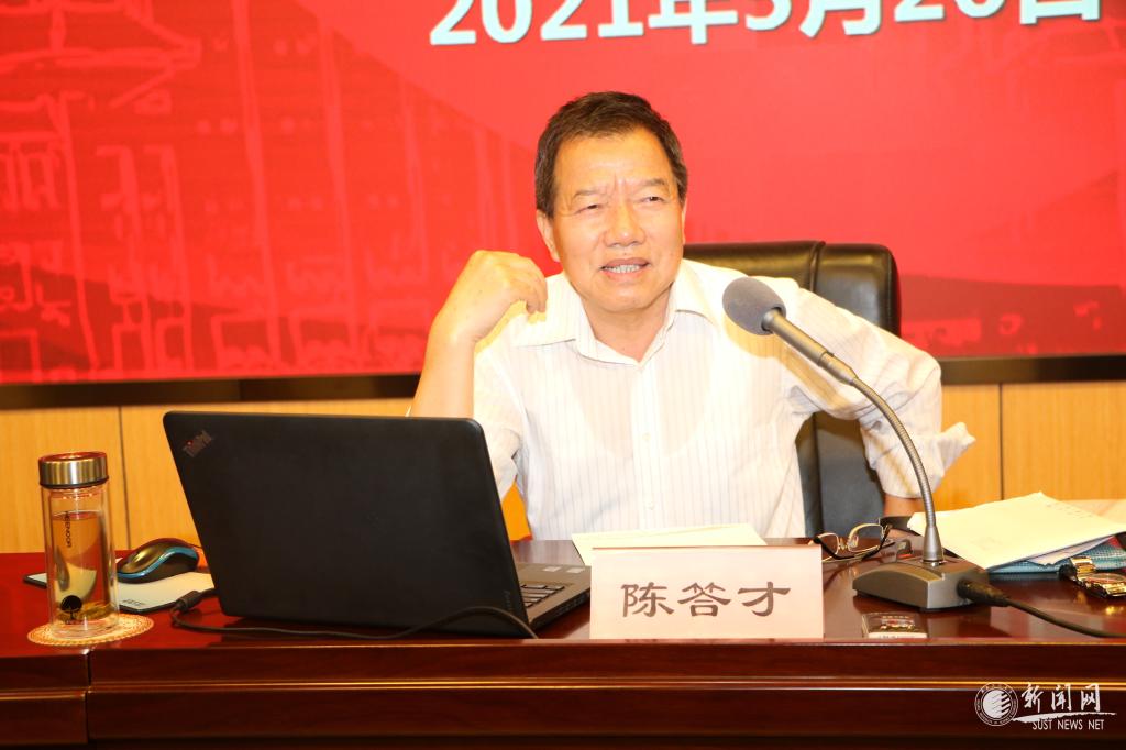 陈答才从“中国共产党是义无反顾肩负起历史使命的无产阶级政党,中国共产党是不断取得胜利、能担大任的无产阶级政党,中国共产党是在新的历史方位中不断进行伟大斗争、建设伟大工程的无产阶级政党,对中国共产党第二个‘一百年’的远景思考”四个方面阐述了党的百年光辉历史与宝贵经验。他通过生动的历史故事分析了中国近代史上中国人民在半殖民地半封建社会的压迫下救亡图存的史实,用历史唯物主义观论证了只有中国共产党才能救中国。他回顾了中国共产党带领人民,从夺取新民主主义革命的胜利到取得社会主义革命建设的巨大成就,再到改革开放后富起来强起来的历史飞跃,充分论证党是在持续的探索中、在经受各种磨难和考验中、在不断总结经验中、在不断凝聚人民力量中朝着民族复兴之路坚定前行。他重温了习近平总书记在十九大报告中提出的新时期党的建设的总要求,阐述了中国共产党是在新的历史方位中不断进行伟大斗争、建设伟大工程的无产阶级政党,坚持党对一切工作的领导是中华民族伟大复兴的根本保证。并对中国共产党第二个“一百年”的远景,提出发展是永恒的主题、加强党的自身建设不能有丝毫松懈、力争用30到50年进入社会主义中级阶段(或迈向高级阶段)的理论性展望思考。