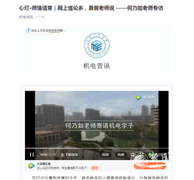 机电工程学院开设线上专栏传递英雄力量。机电学院利用微信公众号开设“英雄故事接力跑”专栏,教工及学生党支部党员全员参与,以图文、音频等方式,接力讲述百年党史中的英雄人物,预计在机电资讯及易班平台持续推送100位英雄人物故事,激励全院师生从百年党史中汲取智慧和力量。同时,打造以“点亮学生理想的灯,照亮学生前行的路”为宗旨的“心灯”线上栏目,先后邀请多位思政教师、专业课教师和优秀学生代表,以线上短视频形式为大学生厘清模糊认识、解开思想疙瘩。