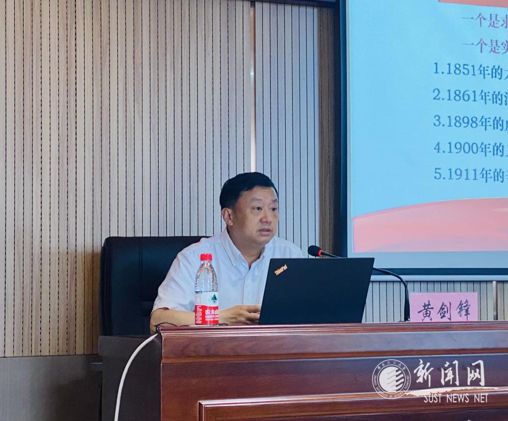 黄剑锋按照中国共产党的产生、奋斗和发展的主线,从“初心”和“使命”角度出发,以党史学习教育的重要意义和落脚点为关键,简要回顾了中国共产党的百年辉煌历程,深入浅出地解读了中国共产党从诞生到形成领导地位和核心作用的历史必然性。并结合自身思考,回答了中国共产党“从哪里来”“到哪里去”“初心使命践行效果”“当前和未来该怎么做”等四个问题。