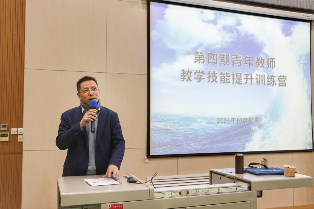 教师发展中心常务副主任徐永建教授在开班仪式上致辞。他强调了教师教学的重要性,指出教学是教师立足的根本。他表示,本期训练营活动的目的一是为了让青年教师站稳讲台,做一名合格的教师;二是提供一个交流的平台,通过本次活动使不同学院之间的教师彼此熟悉,交流教学心得,同时在科研上加强合作,为学科交叉提供便利。他希望参训教师放下顾虑,踊跃交流,展现积极自信的风貌,并将培训中学到的教学理念、方法带入到课堂之中,最终使学生受益。