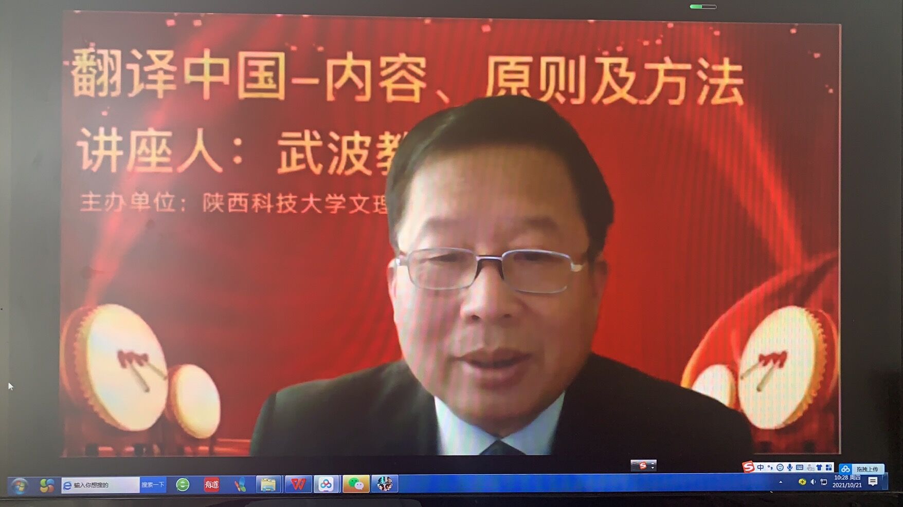 10月20日下午,外交学院英语系武波教授应邀作了题为“翻译中国—内容、原则及方法”的线上讲座。讲座由文理学院副院长李稳敏主持,外语系师生聆听了此次讲座。
