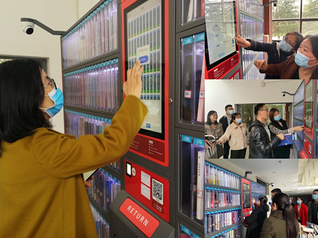 图书馆(档案馆)党支部以此为契机,开展主题党日活动,积极引导党员参与志愿服务,支部党员主动报名参与自助借阅柜前期准备工作,分两组进行自助借阅柜图书上架工作。志愿活动中,党员们热情高涨,按照操作流程完成了图书打包、运送、上架等工作,并学习了自助借阅柜的使用方法。经过大家的通力合作,一册册图书摆放整齐,完整有序。安装好自助借阅柜立刻吸引了师生的目光,大家驻足浏览图书,打开手机扫描享受便利的借阅方式。开通仅一天的时间,通过自助借阅柜借还图书达80余册。