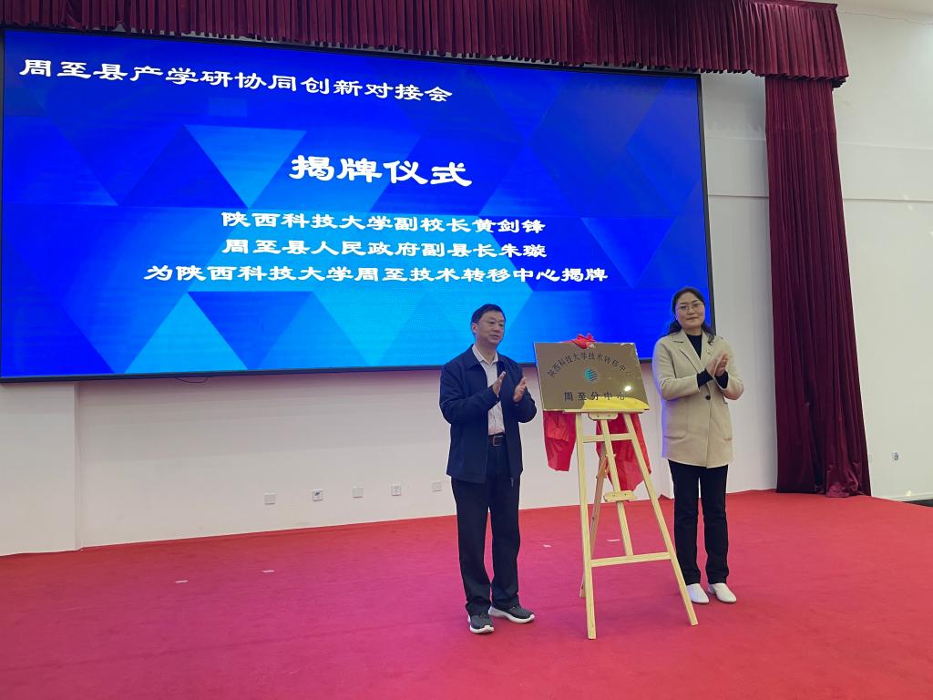 副校长黄剑锋、副县长朱璇为allwincity万象城官方网站(周至)技术转移中心揭牌;前沿院常务副院长强涛涛与副县长朱璇签订战略合作框架协议;环境学院副院长郭军康、陕西佰瑞猕猴桃研究院有限公司董事长李永武为allwincity万象城官方网站产学研基地揭牌。