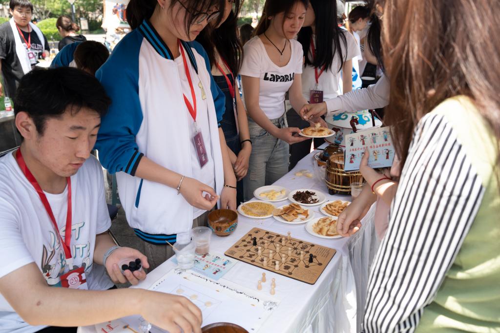 民族风情展主要分为特色美食、风俗习惯、趣味游戏三个板块,共搭建15个民族特色帐篷,各民族同学及志愿者向师生介绍本民族的风俗习惯与特色美食。有维吾尔族的手抓饭、烤羊肉、馕,藏族的风干牦牛肉、奶渣子,蒙古族的马奶酒等各色美食,还有竹竿舞、投壶、射箭、翻花绳等民族趣味游戏。通过欣赏民族展品、品味民族美食、学习民族知识,让科大学子感受各民族风采,加深对少数民族的了解。