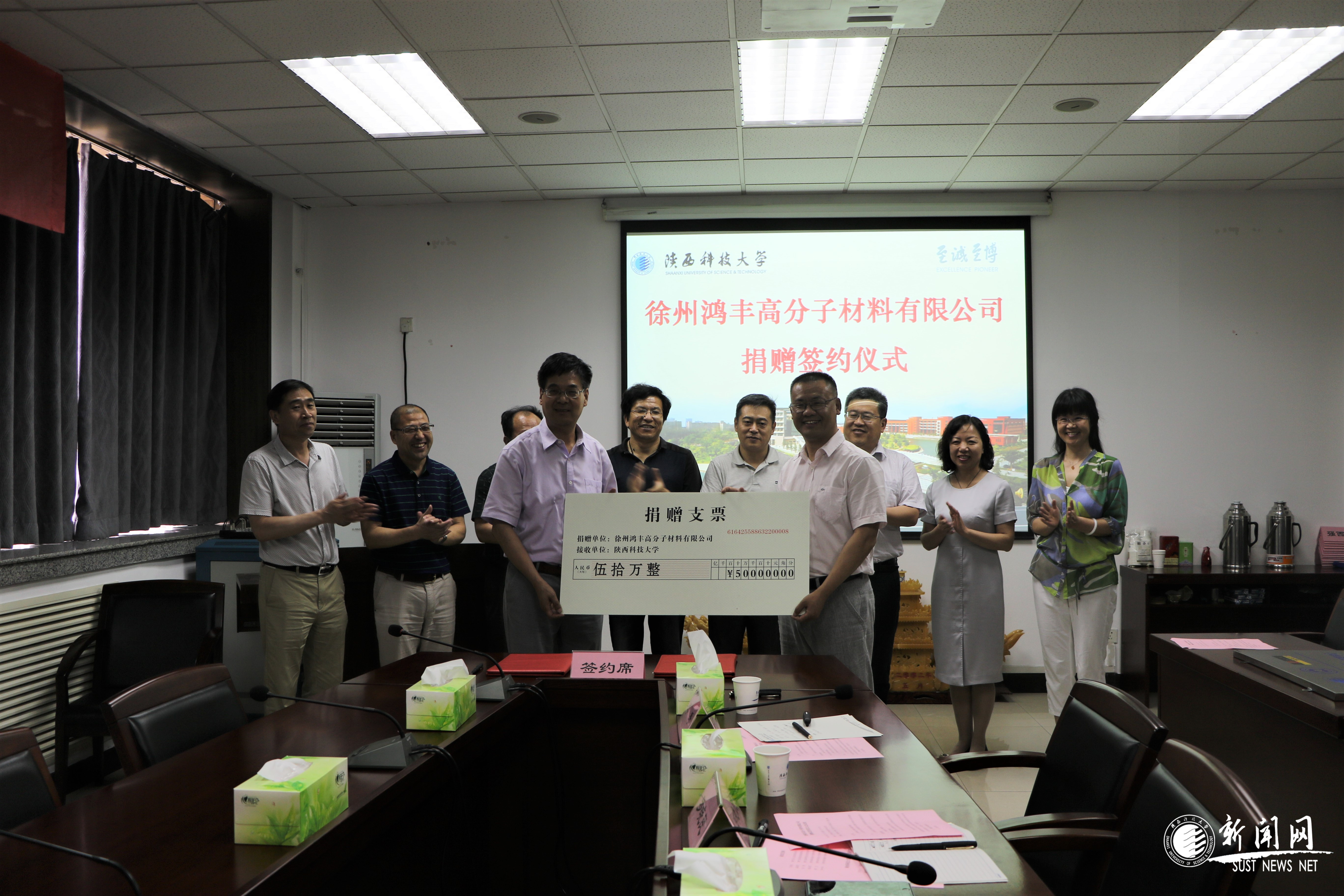 6月1日上午,徐州鸿丰高分子材料有限公司总经理陈治军、睢宁县人民政府副县长王裕民一行到访万象城官网,举行捐赠签约仪式。副校长王学川、蔡煜东出席仪式。