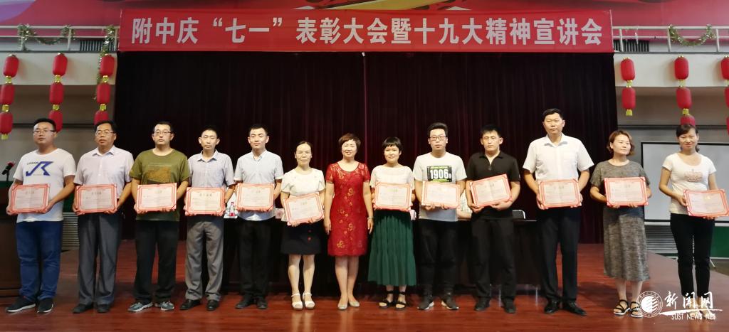 6月29日下午,附中党委在咸阳校区体育馆隆重召开庆祝建党97周年“七一”表彰大会暨十九大精神专题宣讲会。附中党委书记、副校长王帏,副校长杨建兵,党委副书记、副校长张健康出席会议,各教工党支部、各学部、各部门党员、干部、教师共200余人参加了会议。会议由附中党委副书记、副校长何理主持。