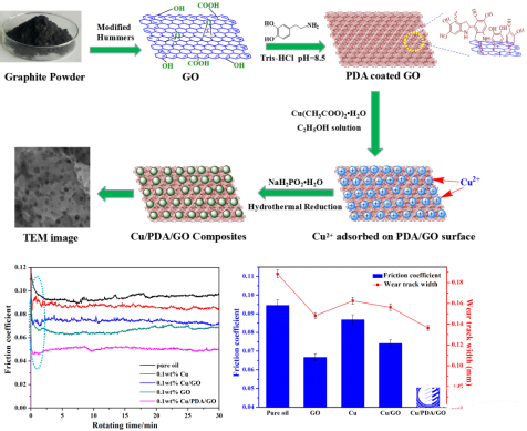 宋浩杰教授是材料学院2017年引进的学术骨干,其以第一作者撰写的论文《Facile synthesis of copper/polydopamine functionalized graphene oxide nanocomposites with enhanced tribological performance》在《Chemical Engineering Journal》(SCI一区,IF=6.735)正式发表。该工作通过聚多巴胺功能化在石墨烯纳米片表面原位生长高密度分散均匀的纳米铜,该复合材料具有优异的抗磨减摩性能,在润滑材料领域具有良好的应用前景。