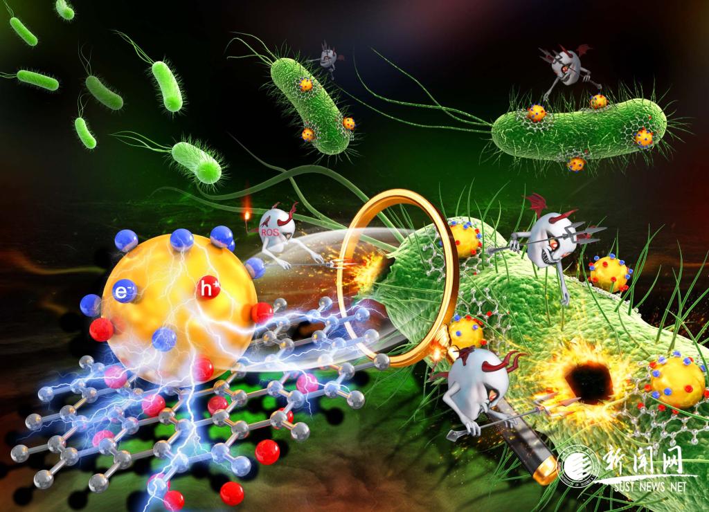 刘俊莉博士通过溶剂热法成功制备了水溶性氧化锌/石墨烯复合量子点,系统研究光照条件、复合量子点结构等对ROS产生量、细菌细胞膜破坏情况及抗菌性能的影响,揭示复合量子点的光驱动抗菌性能增强机制,为异质结构纳米复合抗菌剂设计与合成提供新思路。该研究成果作为后封面论文发表在《Nanoscale》(SCI一区,IF=7.233)。