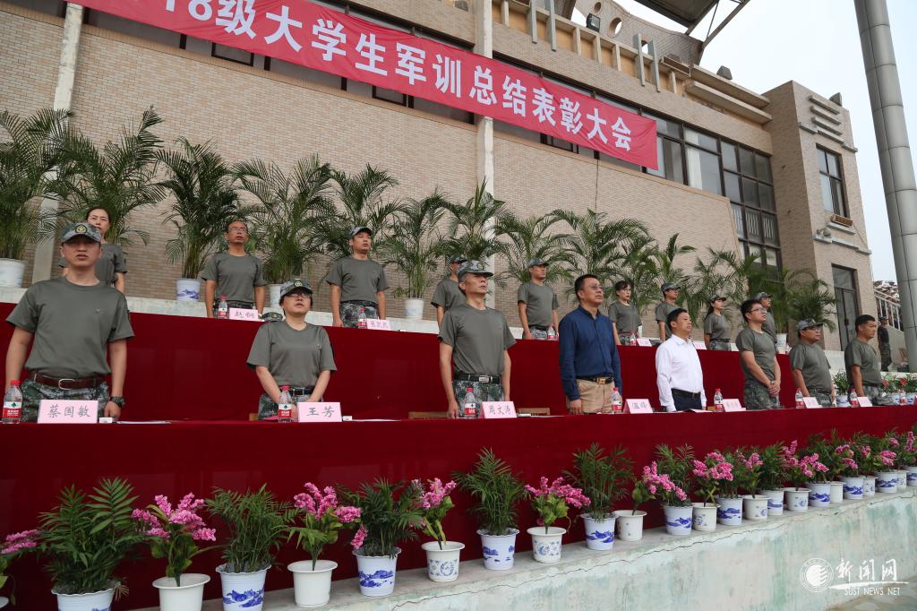 黄剑锋宣读了《关于表彰2018级军训先进集体和先进个人的决定》,他号召全体同学牢记人民军队的优良传统和作风,再接再厉,不断进取,开拓创新,把在军训中学到的好思想、好作风、好传统运用到今后的学习和工作中,让军训的经历成为今后不断进步的光荣起点。