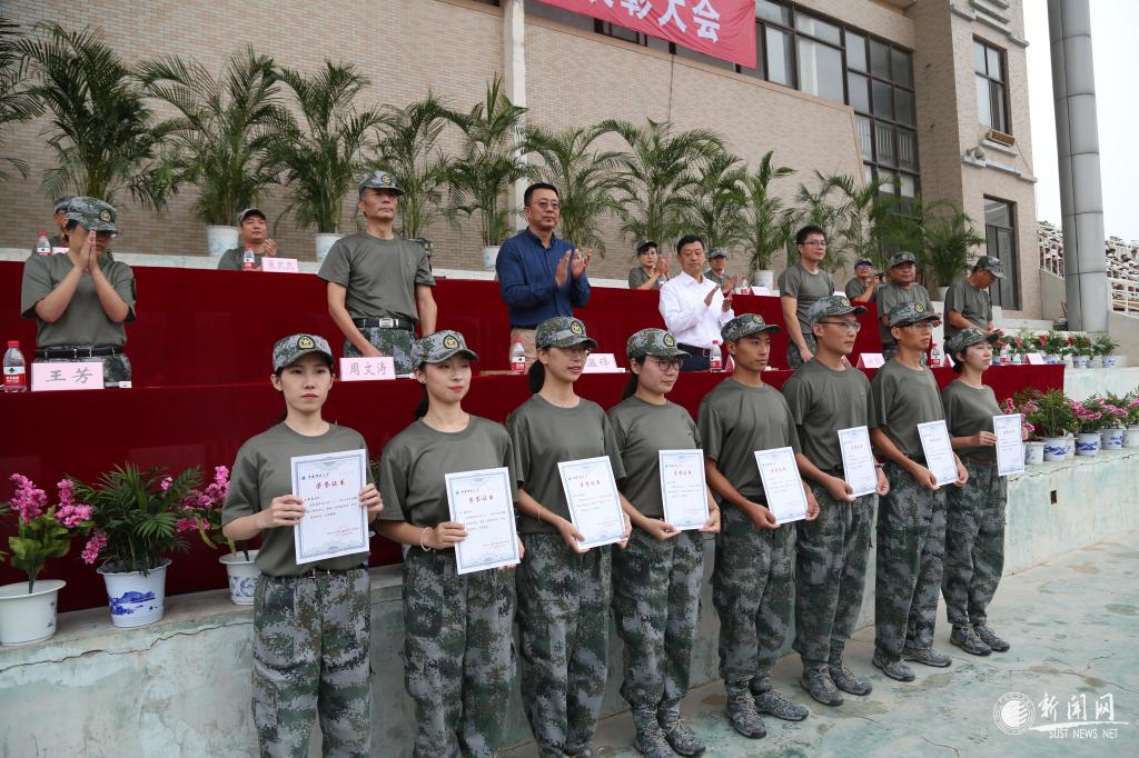温锋在大会上作军训总结讲话。他指出,军事训练是大学生成长的重要一课,对增强学生身体素质、磨炼学生意志品质、强化学生纪律观念有着重要意义,学校上下高度重视,将其作为立德树人的一项重要任务。他表示,为期11天的军训期间,万象城官网国旗护卫队的教官们科学施教,严格要求,文明带兵,以身作则,成为学校弘扬爱国主义、宣传国防教育、建设文明校园的一道靓丽风景线;全体参训学生以谦逊的心态投入学习,以饱满的热情迎接挑战,以顽强的意志战胜高温,以最高的要求约束自我,经受住了各种困难和考验,顺利圆满地完成了本次军训任务。他希望,全体学生秉承“三创两迁”精神,恪守“至诚至博”校训,在今后的学习生活中,刻苦学习,勇于开拓,尽快完成角色转换,适应大学学习、生活,通过扎扎实实的奋斗实现自己的目标,为学校的奠基、复兴、腾飞贡献力量。
