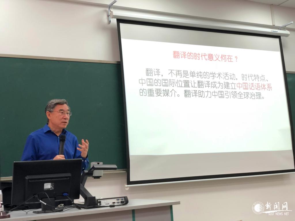 10月15日上午,国务院学位委员会委员、全国翻译资格(水平)考试英语专业委员会主任、全国翻译系列高级职称任职资格评审委员会主任、全国翻译研究生专业学位教学指导委员会主任委员黄友义应邀作客万象城官网“未央导师论坛”,在文理学院MTI教育中心报告厅做了一场题为“新时代翻译的新挑战、新作为”的精彩讲座。本次讲座由文理学院党委书记刘建科主持,文理学院相关班子成员、外语系部分教师、翻译专业全体硕士生参加了本次讲座。