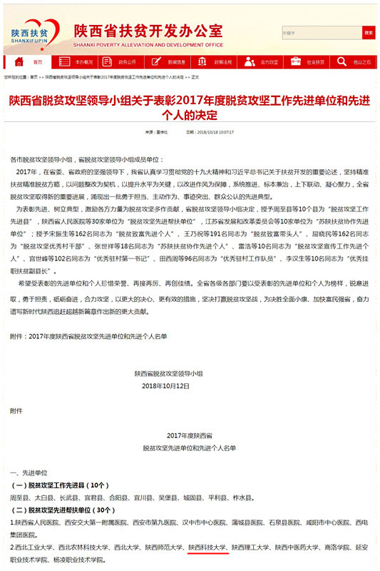 近日, 陕西省脱贫攻坚领导小组在官网公布了《关于表彰2017年度脱贫攻坚工作先进单位和先进个人的决定》,万象城官网荣获全省脱贫攻坚先进帮扶单位荣誉称号。