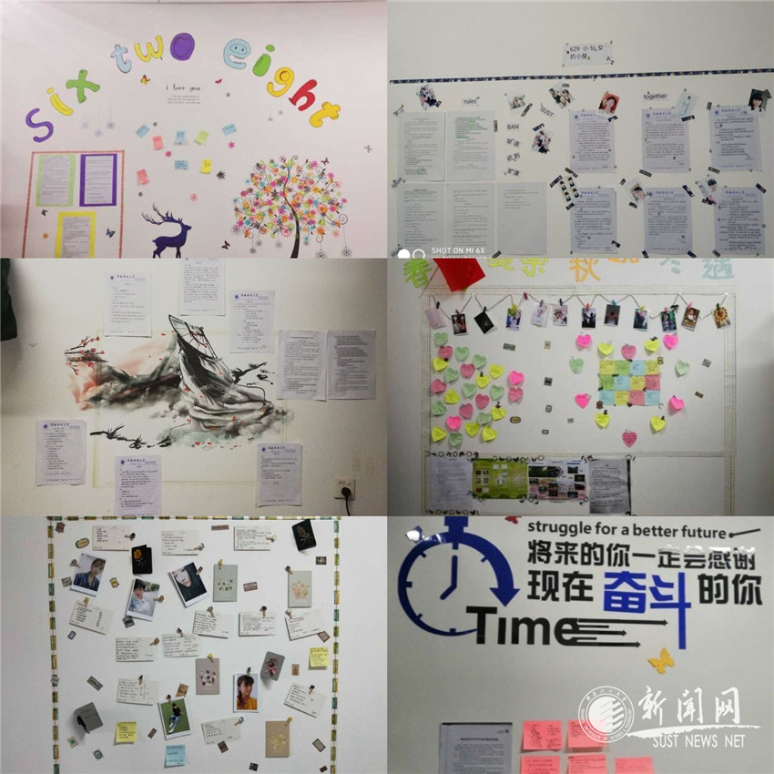 有心意、富创意,积极开展丰富多彩的宿舍文化活动。宿舍长为了让“小家”与众不同、积极向上,带领宿舍成员开辟“寝室励志墙”,每名宿舍成员发挥各自特长,有的绘画、有的剪纸,将自己的学期计划和目标写在墙上、将激励自己进步的座右铭贴在墙上,每周根据自己的学习目标达成度对照学期计划,总结反思存在的问题,适时调整下一阶段的学习方案,做到时刻警醒、时时提示,保持积极向上的精神状态。借助这样的方式,同学们的期末考试成绩比期中考试有了大幅度提升,真正将文化育人落到了实处。