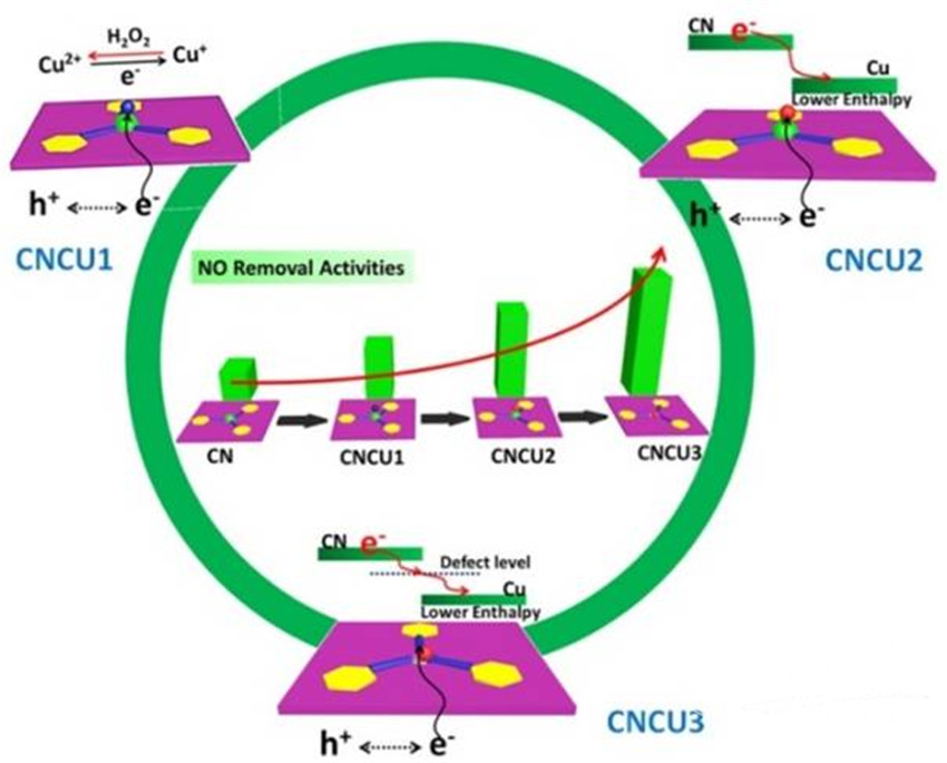 Cu改性氮化碳活性连续提高示意图