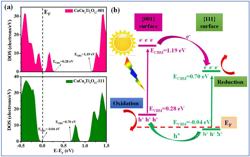 王传义教授等以既有双缺陷(金属空位Ti3+, Cu+和氧缺陷)又含高暴露面({001}和{111})的双钙钛矿材料CaCu3Ti4O12为模型,通过光降解抗生素活性测试,验证了异质面的作用并提出了缺陷偶极概念。相关成果发表在环境科学与工程类1区杂志《Applied Catalysis B: Environmental》(https://doi.org/10.1016/j.apcatb.2019.03.086)(IF=11.698)上。