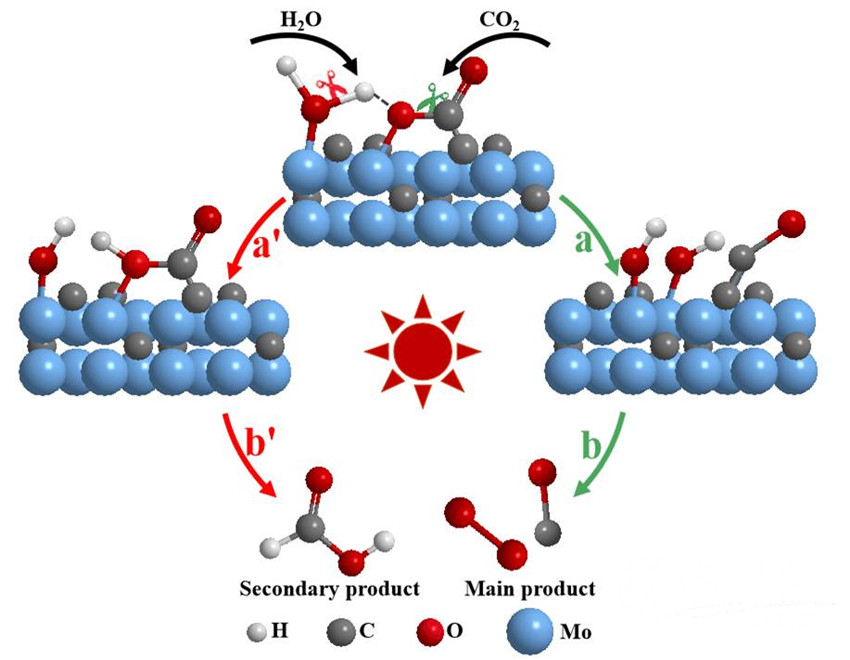 b-Mo2C光驱动催化CO2转化过程示意图