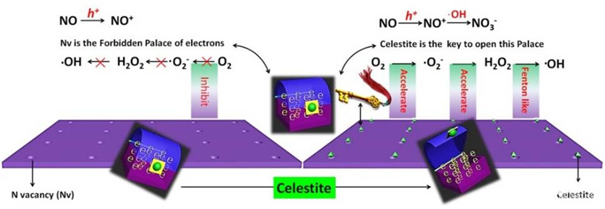 天青石纳米颗粒影响氮化碳去除氮氧化物示意图