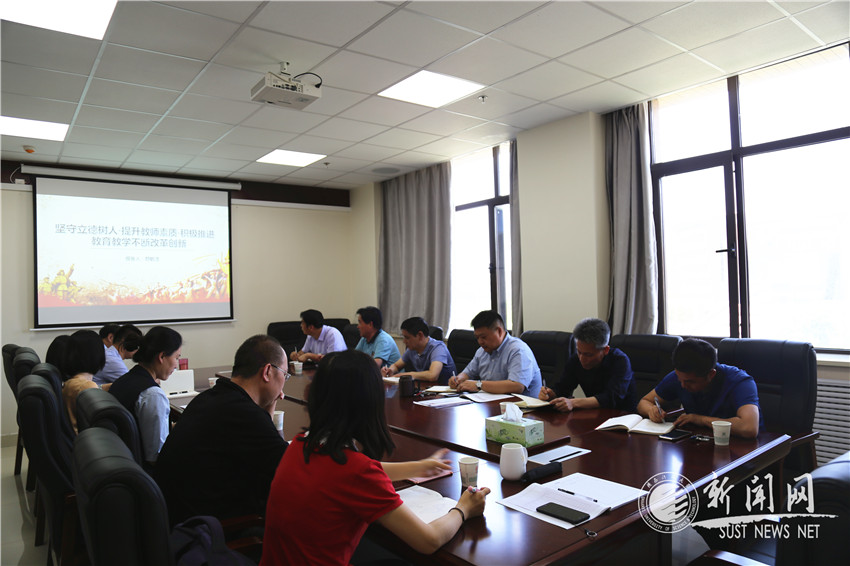 会议第一阶段,院党委特别邀请陕西省委理论讲师团特聘教授颜毓洁为参会同志作了题为“坚守立德树人,提升教师素质,积极推进教育教学不断改革创新”的主题报告。颜教授结合习近平总书记在学校思想政治理论课教师座谈会上的讲话,从思政课定位出发深入分析了教师在立德树人根本任务过程中的重要作用,并结合多年教学经历,从课程内容和设计与在场同志探讨了专业课中思政元素切入点的挖掘,他深入浅出的解读了习近平总书记对思政课教师的“六个要求”、对思政课“八个相统一”和对文化文艺和哲学社会科学工作的“四个坚持”的要求,为在场同志上了生动的一堂课。第二阶段,院党委副书记张凯凯带领全体参会人员共同学习了《习近平在纪念五四运动100周年大会上的讲话》,并结合学生工作案例向在场同志作了详细解读。