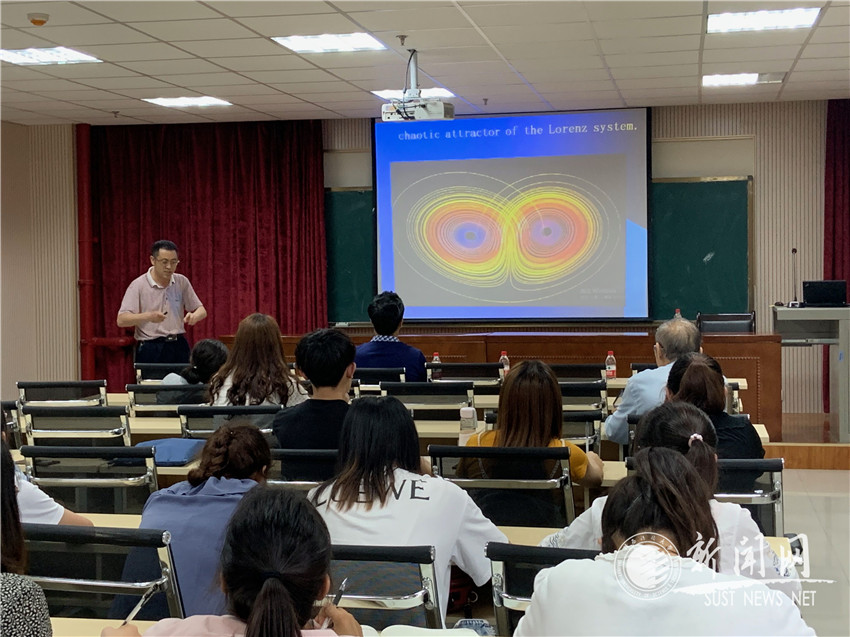 报告会上,杨启贵教授首先讲述了关于混沌系统的一些研究及其进展,然后从最简单的系统开始介绍,对简单非线性Lorenz型系统进行了说明,并通过图形对具有1个鞍点、2个鞍焦点和3个鞍点的混沌系统进行了阐述;随后对混沌系统中仅包含同宿环、仅包含异宿环、同时包含同宿环和异宿环进行了详细阐述;最后提出了一个新的混沌系统—3维3片分段仿射系统,说明了三种情况下存在异宿环的标准以及存在混沌的充分条件。