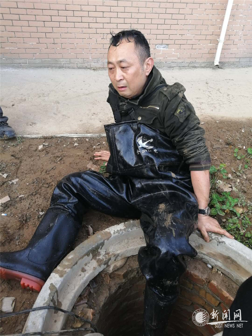 当笔者问起葛磊师傅冒着生命危险,抢修水管有何感受时,他激动地说:“能为大家做点事是我的光荣,险情就是责任,责任就是压力,保障水通是后勤人员的天职。看上去我做的都是小事,但其实都是和学校师生生活相关的大事,马虎不得。牢记使命,为大家做好后勤服务,就是要冲在前面,带好头。有人说我是个“疯子”。说实话,下到4米深的井里查找漏水点,心里还是会有一些担心和害怕,一点都不敢马虎。不过,经历了多次这样的体验,以后再遇到这种情况,起码就心里有数了”。