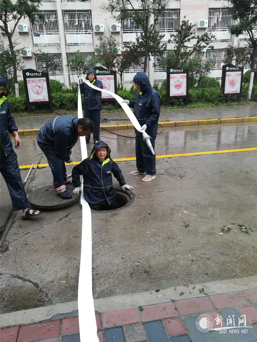 6月21日,笔者在学生一公寓看到了感人的一幕:学生一公寓污水管道全部堵塞,造成大面积厕所污水外流。后勤集团水电维修组人员正在紧急抢修。维修人员葛磊首当其冲,穿着防水衣裤、脚蹬高筒套鞋,手拿15米长钢带疏通器,冒着危险,跳进又脏又臭且狭小的井槽里的进行疏通,仅用了15分钟就将厕所污水管道疏通,既保证了学生的正常生活,也维护了公寓环境卫生,使在现场的公寓办老师和学生深受感动。