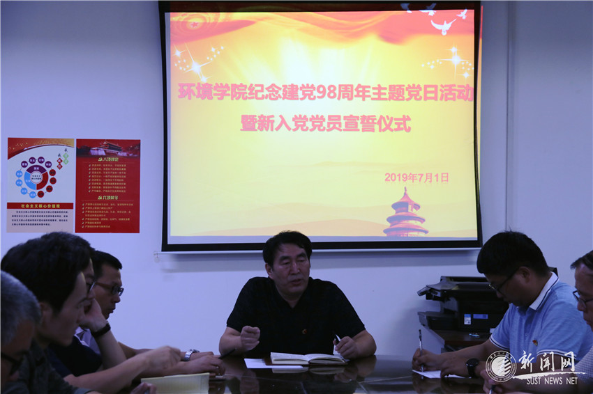 7月1日上午,环境学院在党员活动室举行庆祝建党98周年主题党日活动暨新入党党员宣誓仪式,学院党委委员、教工党支部委员、办公室党支部、全体辅导员、新一期预备党员和部分入党积极分子参加活动,活动由学院学生工作负责人赵伟锋主持。