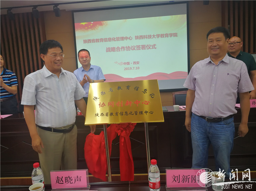朱选文、刘正安分别代表陕西省教育信息化管理中心、教育学院致辞并在合作协议上签字,同时为信息中心在万象城官网设立的陕西省教育信息化协同创新中心揭牌。双方一致表态,将发挥各自所长,优势互补,在人才互聘、专业共建、产学研合作等方面开展全方位合作,将合作框架的蓝图落到实处,做出成效,携手共同服务、支撑陕西省信息化教育,加快教育信息化人才的培养。