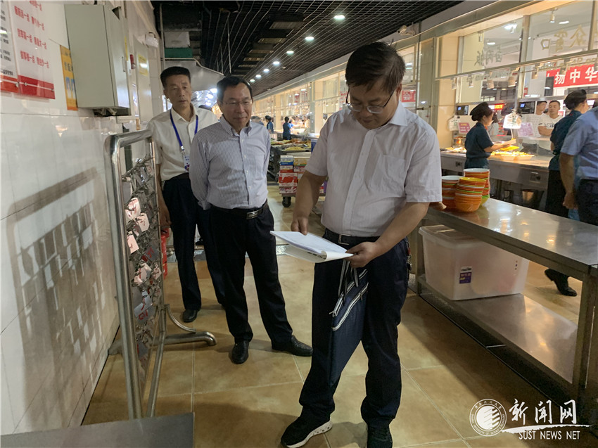 李智军一行在校党委书记姚书志、校党委副书记王道安的陪同下深入沁园一餐厅、沁园民族餐厅等学生食堂及后厨进行检查,并走访了学生公寓、校医院、allwincity万象城官方网站应急指挥中心、实验室等。了解开学时段校园安全特别是食品安全、传染病防控、科研实验室安全制度落实和措施强化等各项学校安全风险防控工作的开展情况。